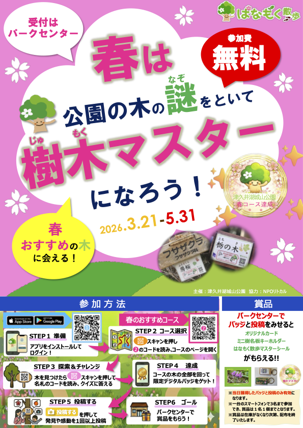 春のおすすめコースの木を見つけてクイズに答えるとオリジナル賞品がもらえます!!