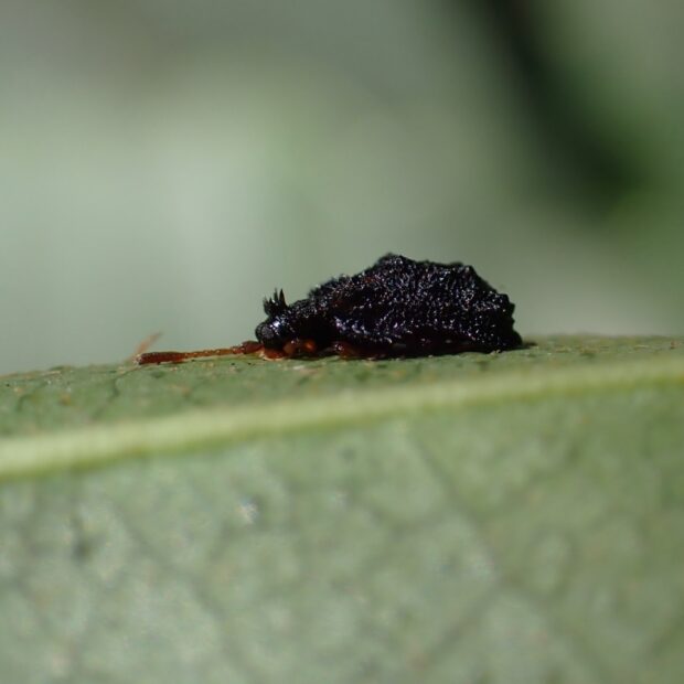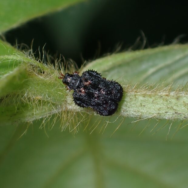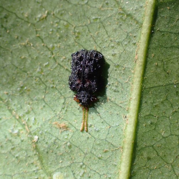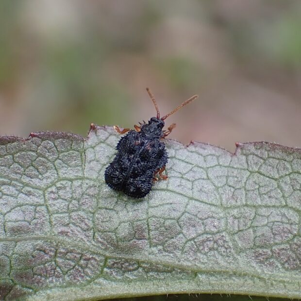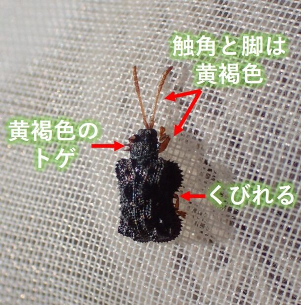 別名カタビロトゲトゲ。 体は黒く多数のトゲがあり、 触角とあしは黄褐色。 夏の終わり頃に現れた成虫は、 落ち葉の下や葉の裏で越冬します。