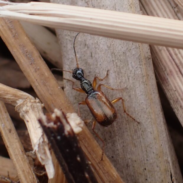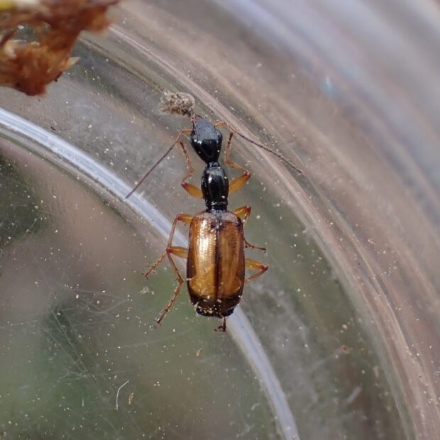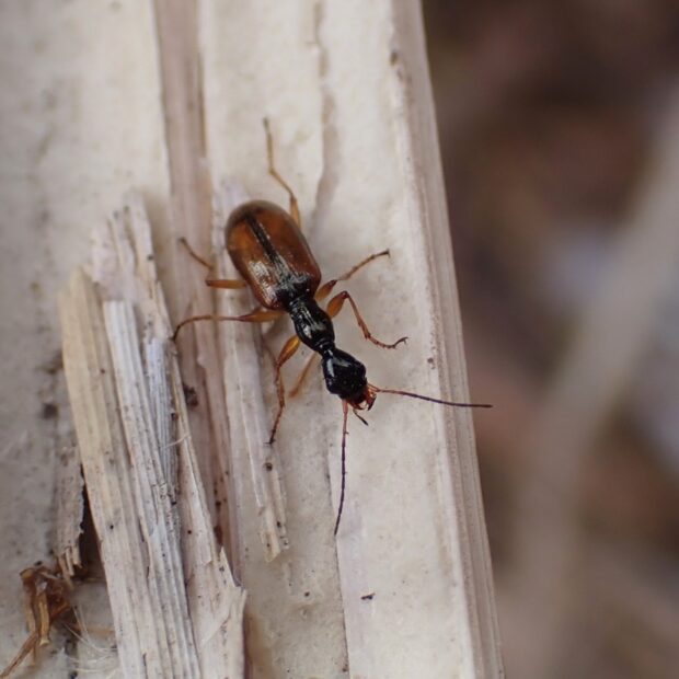 ホッソリした茶色い翅のゴミムシ
