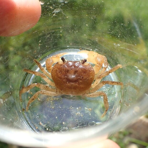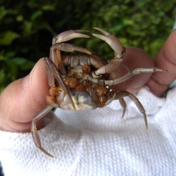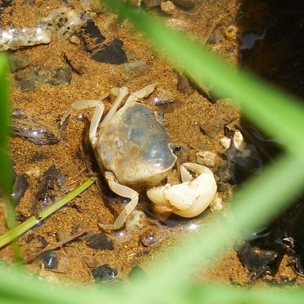 沢に住むカラフルなカニ