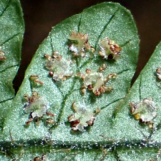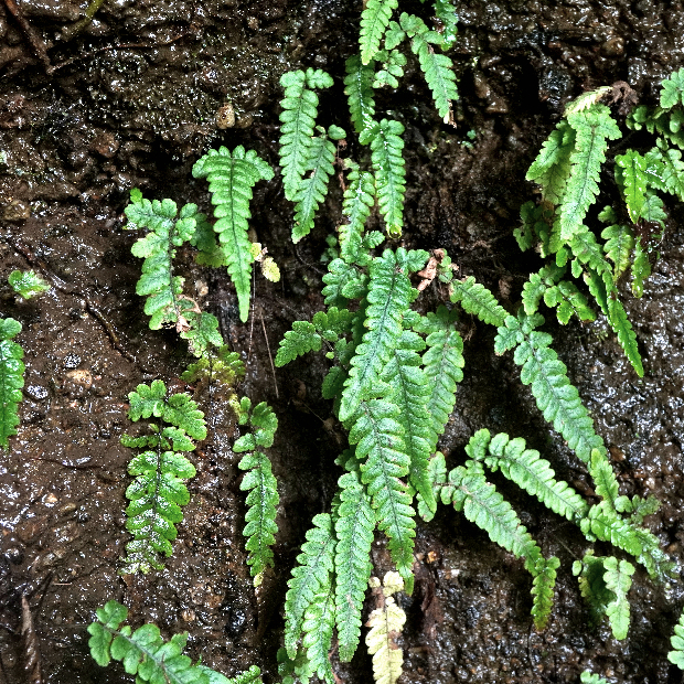 日本の南西端近くにある西表島の固有種で、 その最高峰である古見岳の名がついたシダです。 より広く分布するホラカグマが湿った岩壁に適応した姿と考えられており、 それよりも明らかに細長くて小さい葉をつけます。 ホラカグマとは、 包膜に毛が多く、 軸部分に広がる鱗片がたくさんつくなど、 共通の特徴をいくつか有しています。