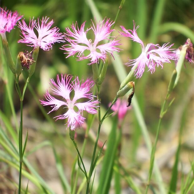 古くから「撫子」の名で日本に自生し、 古人から親しまれてきました。 万葉集や源氏物語、 枕の草子にも登場します。 秋の七草のひとつです。