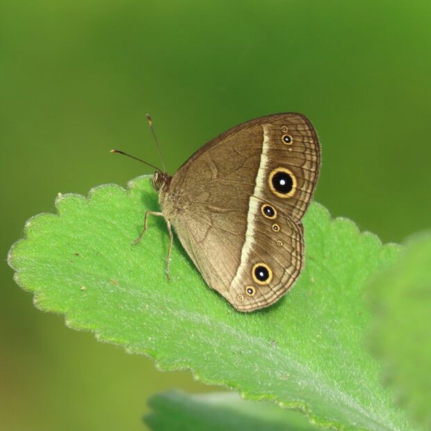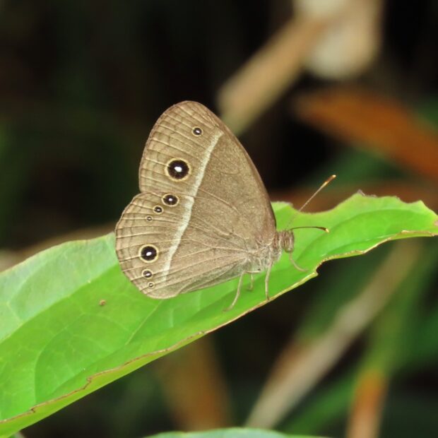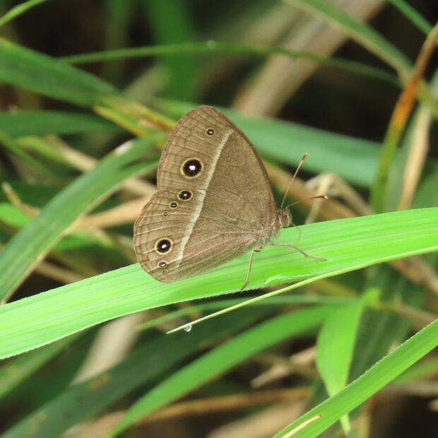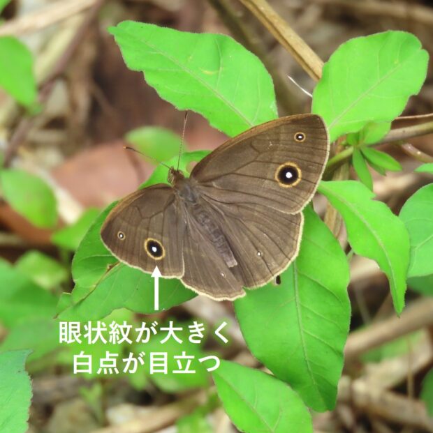 南西諸島で見られる日本固有種。 ヒメジャノメに似ていますが、 分布は重なりません。 薄暗い林や林縁で、 普通に見られます。 草や地面によくとまり、 縄張り意識が強いです。