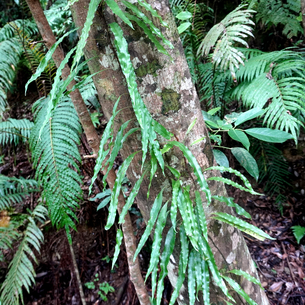 南方に分布し、 幹などによじ登って葉を垂らすシダ。 糠星(ぬかぼし : 夜空にたくさん散らばる星)の通り、 葉裏に星が散りばめられたように、 円形の胞子のう群が多くつきます。 クリハランに似ていますが、 よりやわらかくツヤが強くてスリムな葉形で、 側脈が目立たないなどの違いがあります。