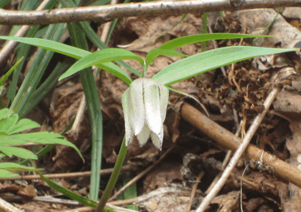 林床にある小形の植物です。 クロユリの仲間で、 つり鐘形の花が下向きに1つ花を咲かせます。