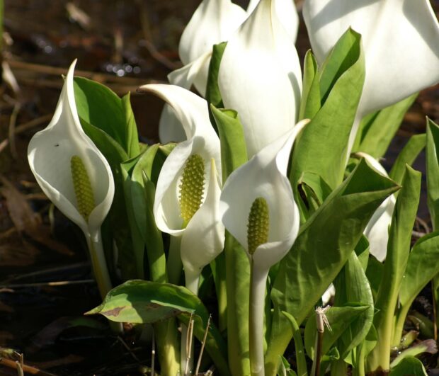 白い花に見えるのは蕚(がく)と呼ばれる葉が変形したもので、 中心で黄色く棒状に付いた一つ一つが花です。