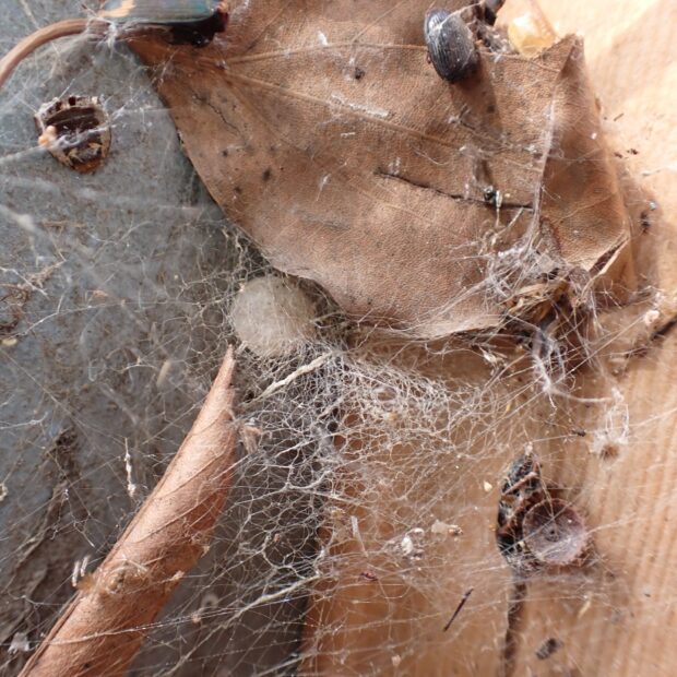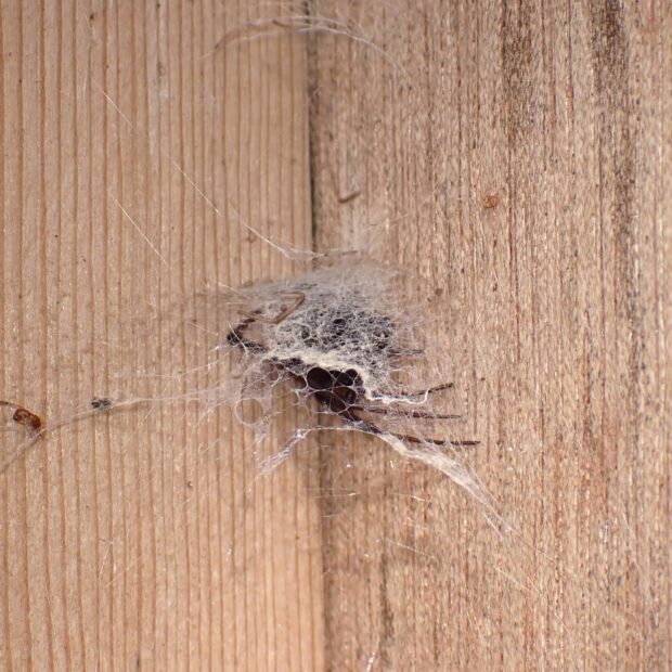 ブロックやフェンスのすきま、 ベンチの裏、 自動販売機の下、 側溝など人工物に複雑な形の網をかけています。 夜行性で夜は目立つところにも出てきます。