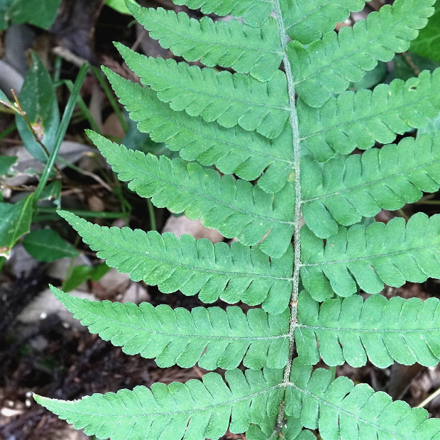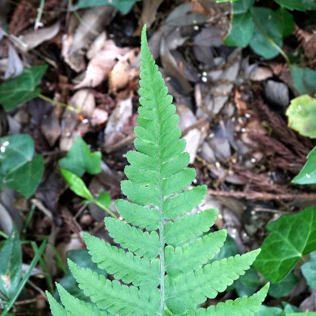 セイタカシケシダに似てやや厚めで、 表面はツヤがなくサラサラした質感。