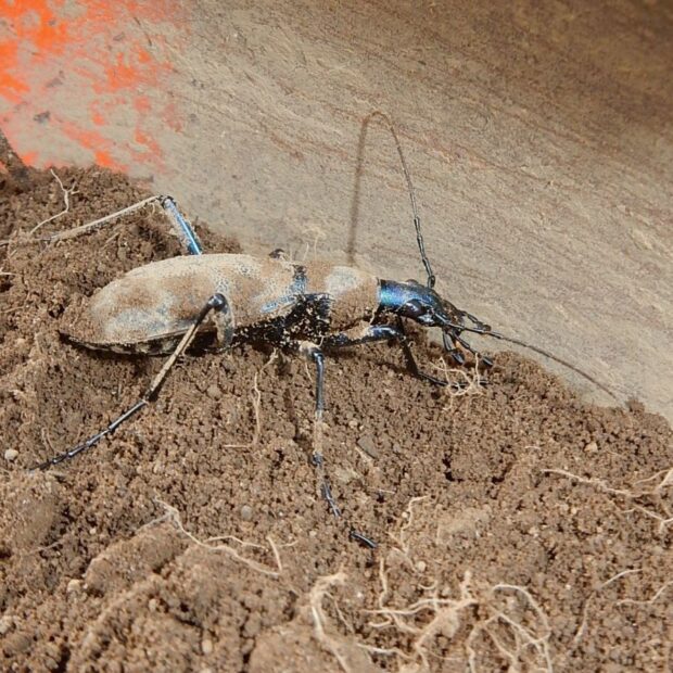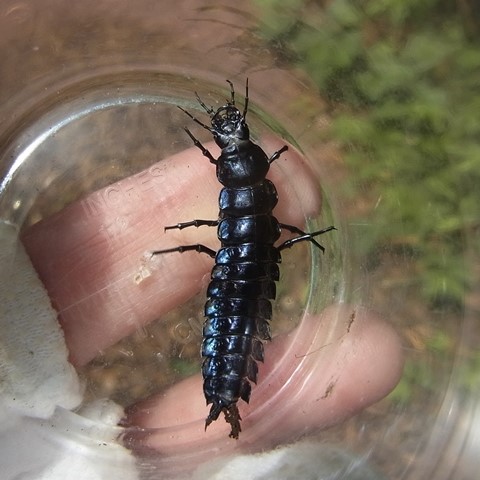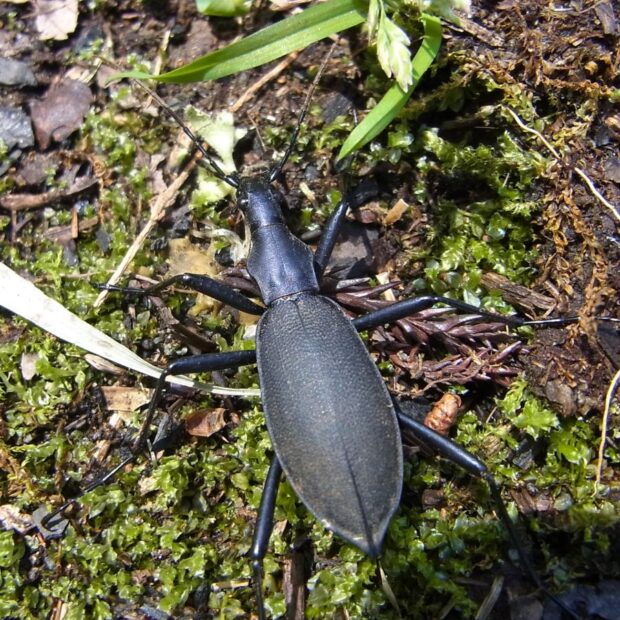 オサムシの仲間。 幼虫、 成虫ともに、 カタツムリを消化液で肉を溶かして食べます。 成虫がカタツムリ(マイマイ)の殻に頭を突っ込んで食べる様子から、 マイマイカブリと名づけられました。 カタツムリ以外のものも食べますが、 カタツムリを食べなければ繁殖できないと言われています。