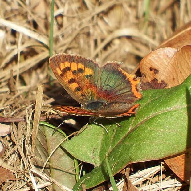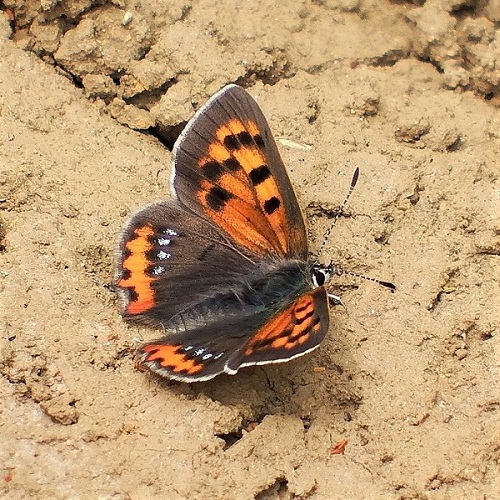 市街地の明るい草はらなどで普通に見られるシジミチョウ。 1年に4~6回発生し、 夏にあらわれるもの(夏型)は黒っぽくなります。 ギシギシやスイバの葉の間や根元付近で、 幼虫で冬を越します。