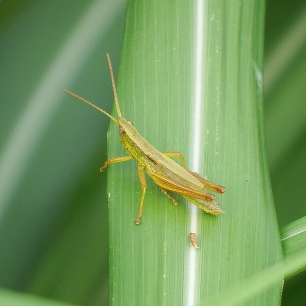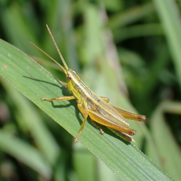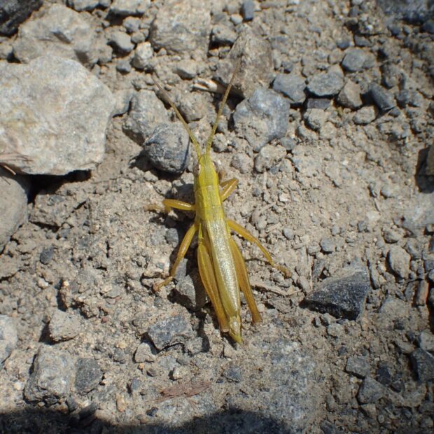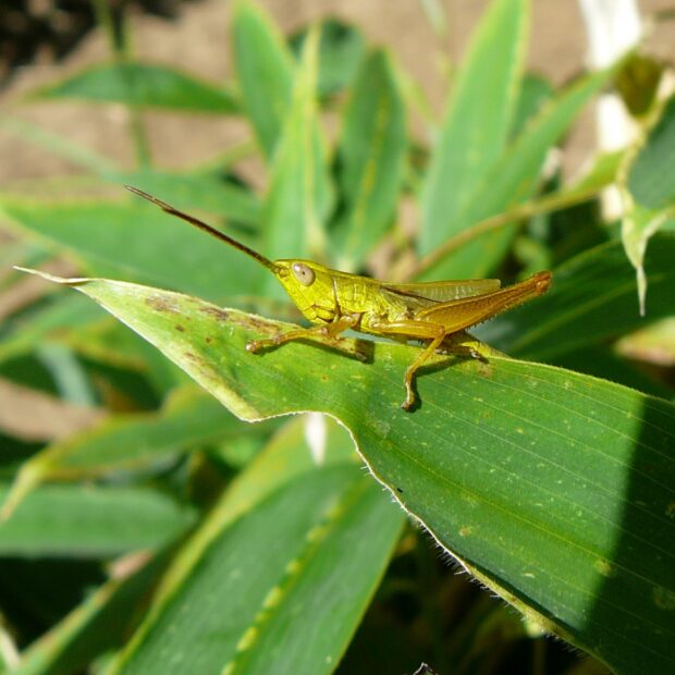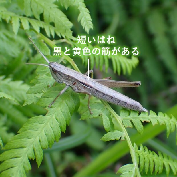 オスが鳴く小さなバッタ