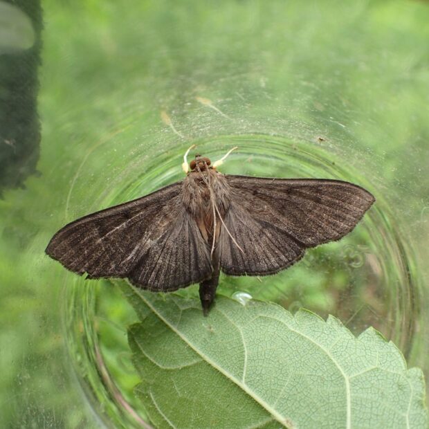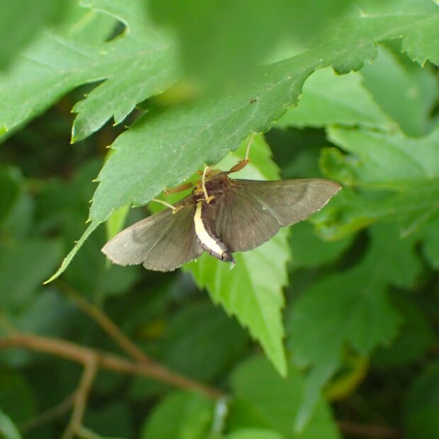 ツトガ科ノメイガの仲間。 ノメイガの中では大型。 「キバラ」は腹部が黄色いことから名づけられましたが、 黄色というより淡いクリーム色の帯があります。 クズがある所で見られます。
