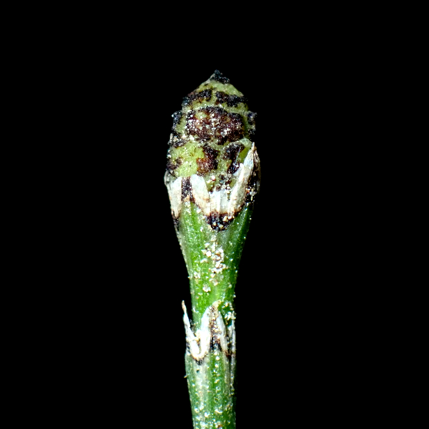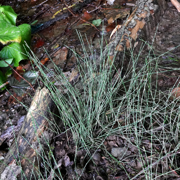 日本では北海道にのみ分布するシダ。 トクサに近縁で、 地上茎先に胞子のう穂をつけるところは同じですが、 茎がそれよりはるかに細くてひょろひょろしています。 より似ているチシマヒメドクサとは、 茎がより細めなことや、 葉鞘の葉片が5個以下であること、 茎の横断面中心が詰まっていることなどで区別できます。