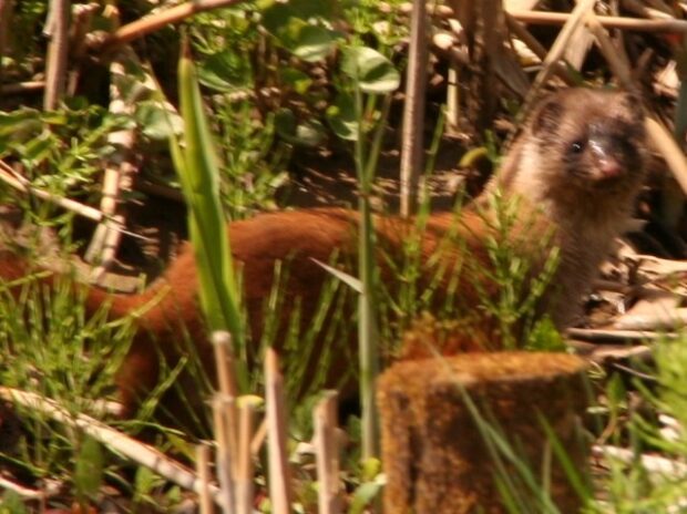 体は細長く、 足は短いです。 体は茶色ですが個体差があります。 額から鼻面が黒褐色 。 水辺を好み ネズミやカエル昆虫類、 鳥類などを食べます。 水に潜って魚やザリガニも捕まえます。