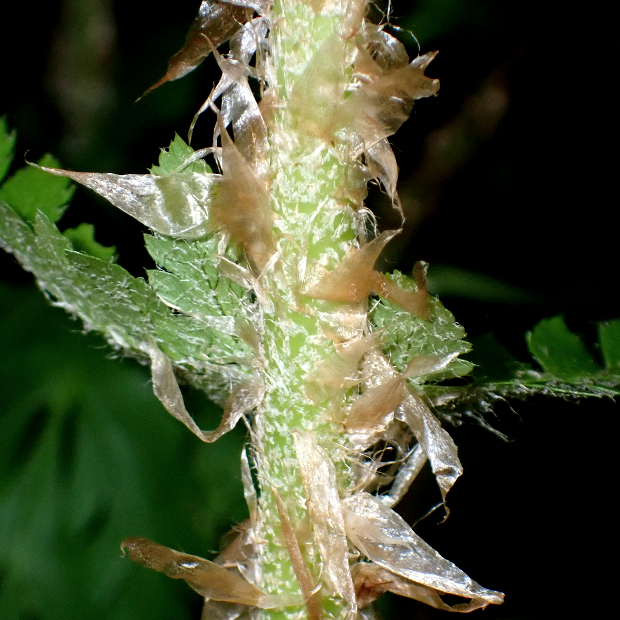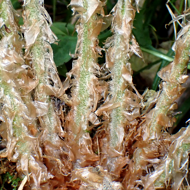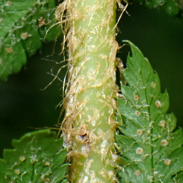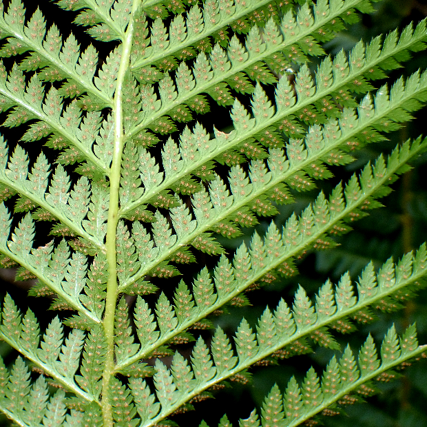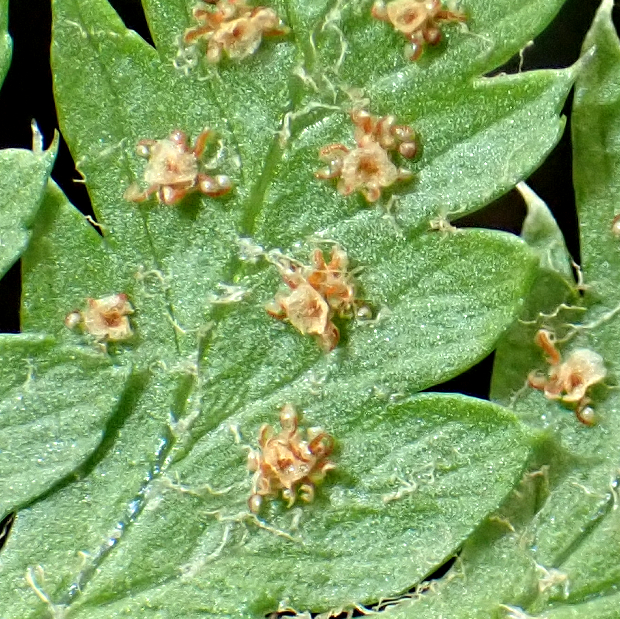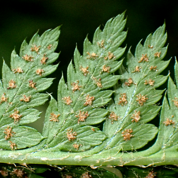 胞子のう群が羽片基部から、 最終的に全体につく。
