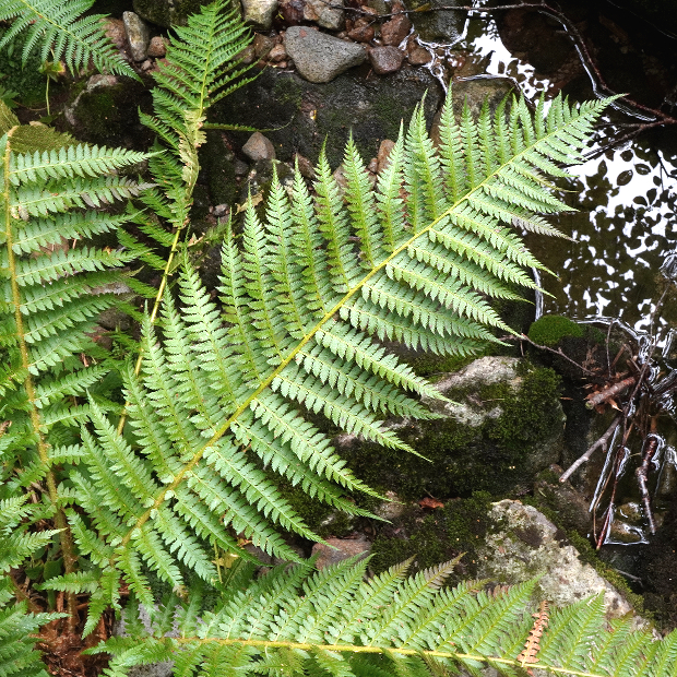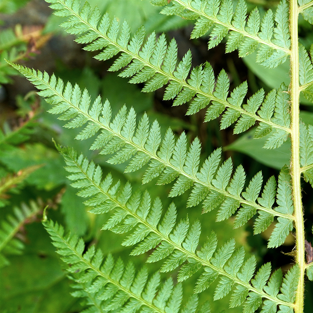小羽片基部は柄にならず、 軸に3mm以上広くつく。