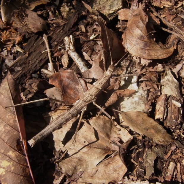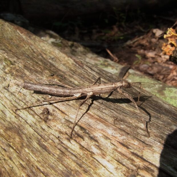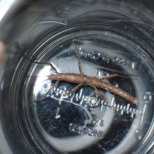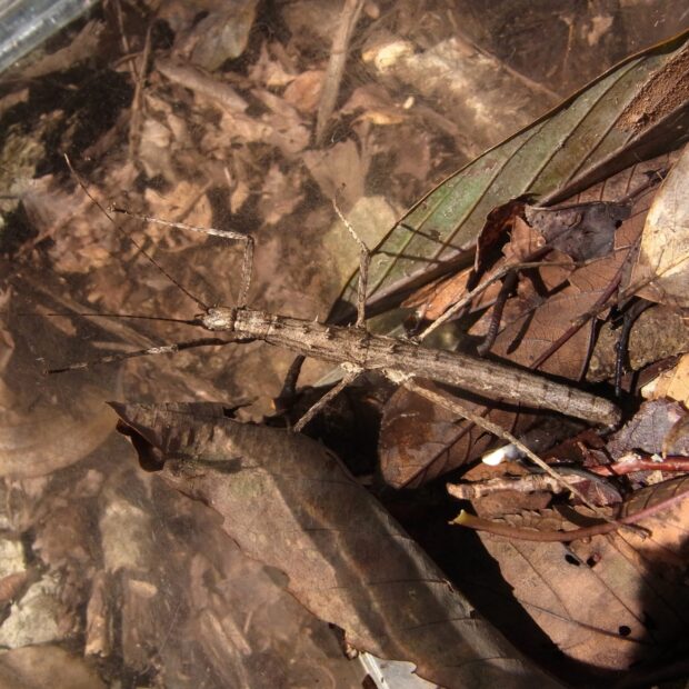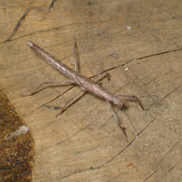 小さなトゲがあるナナフシ。 日本のナナフシでトゲがあるのは本種だけ。 褐色のものが多いですが、 緑色を帯びるものもいます。 ほとんどがメスで、 交尾をせず卵を産みます(単為生殖)。