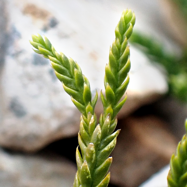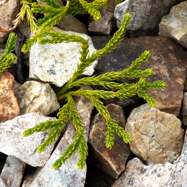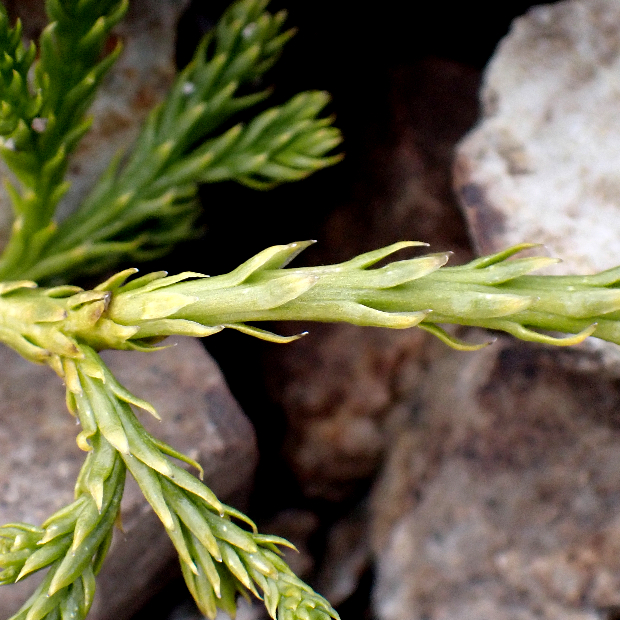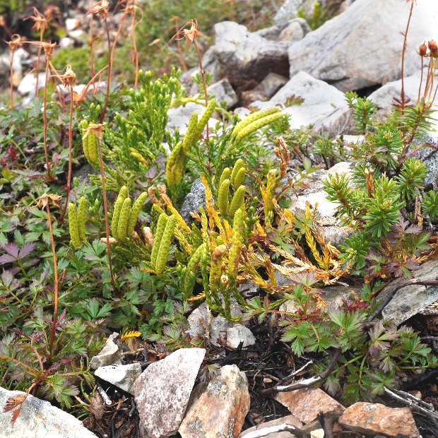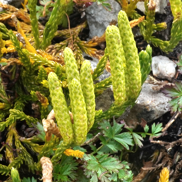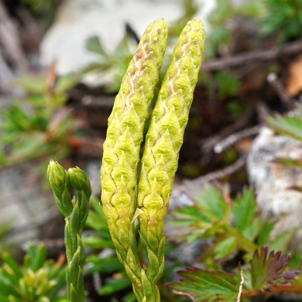 北半球の寒い地域に広く分布するヒカゲノカズラ類のシダ植物。 日本の高山では、 近縁のタカネヒカゲノカズラの方が普通に見られ、 これにとてもよく似ています。 本種の枝分かれした茎はちょっと平らっぽくて、 その茎に沿って葉が4列に並びます。 また、 より標高のある場所に生える傾向があります。 名前のチシマは千島列島のことです。