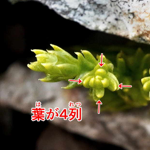 大きさ : 直立茎1~5cm、葉の長さ2~3mm