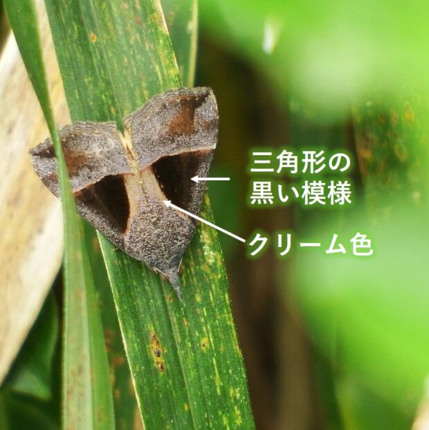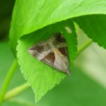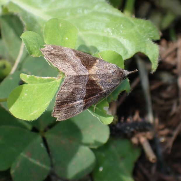 ヤガ科の仲間。 黒っぽい三角形の模様があるアツバ。 イラクサ科植物のある所で普通に見られます。 クロキシタアツバに似ています。