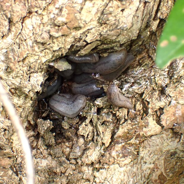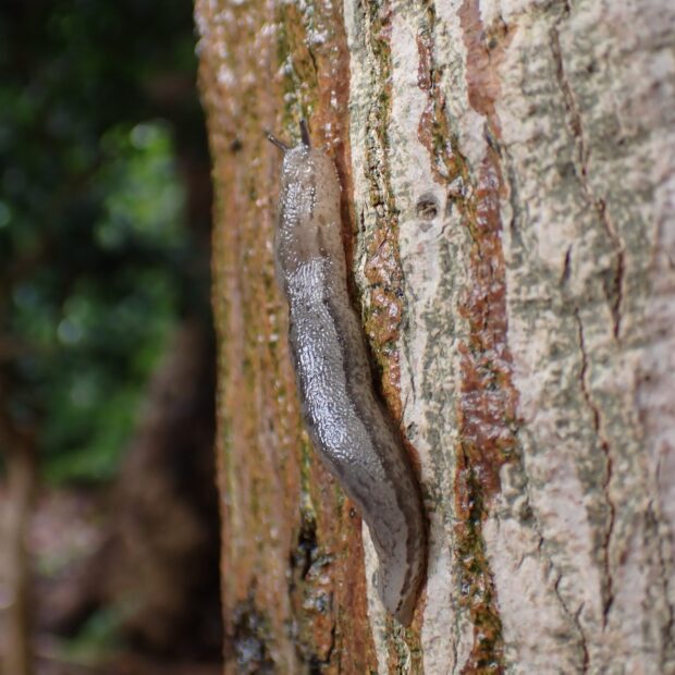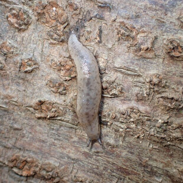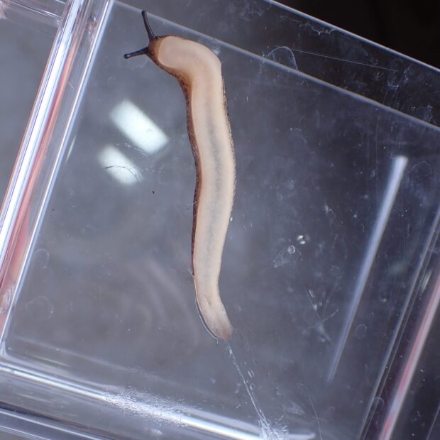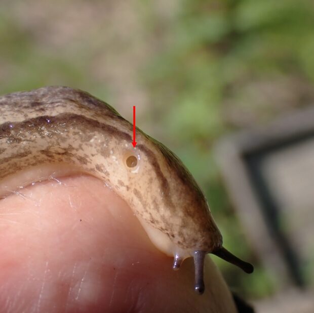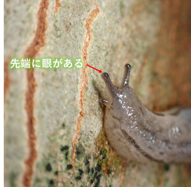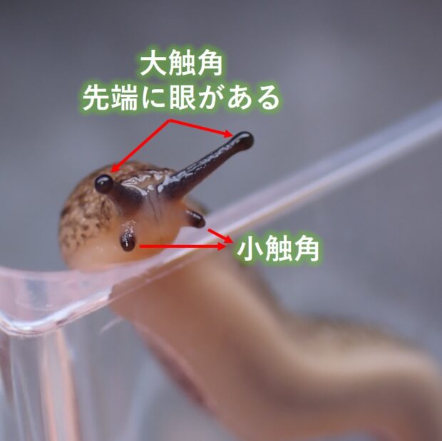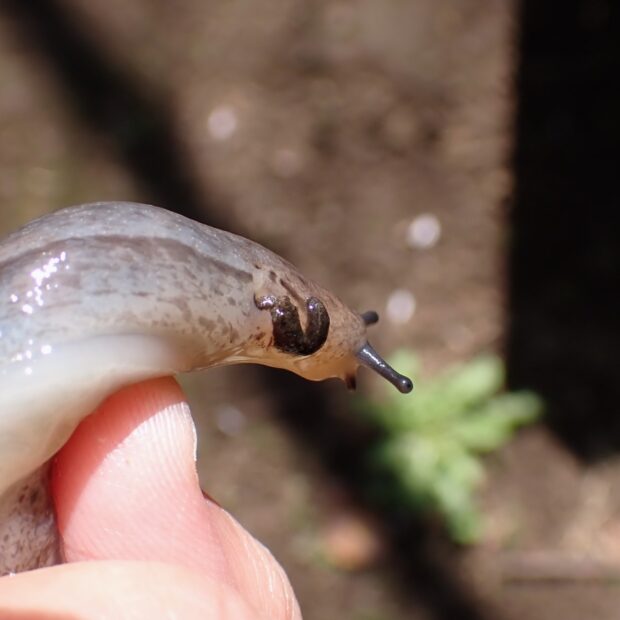 巻貝の仲間。 ナメクジ科。 単にナメクジとも呼ばれる在来種。 湿った場所で普通に見られます。 体は灰色~茶色で、 3本のすじがあります。 雌雄同体。 寿命は約1年。