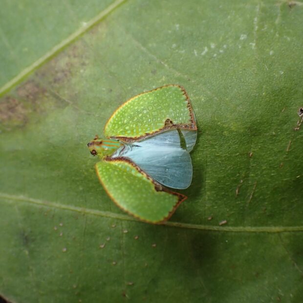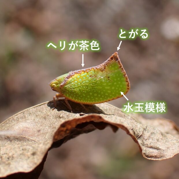 アオバハゴロモ科の一種。 前ばねのヘリが茶色であることが、 名前の由来です。 中国・台湾~東南アジアに分布する外来種。 2015年愛知県で記録されて以来、 各地で見つかり、 分布を広げています。
