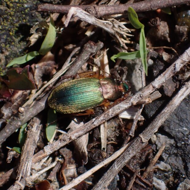 緑色のはねをもつ美しいアオゴミムシ