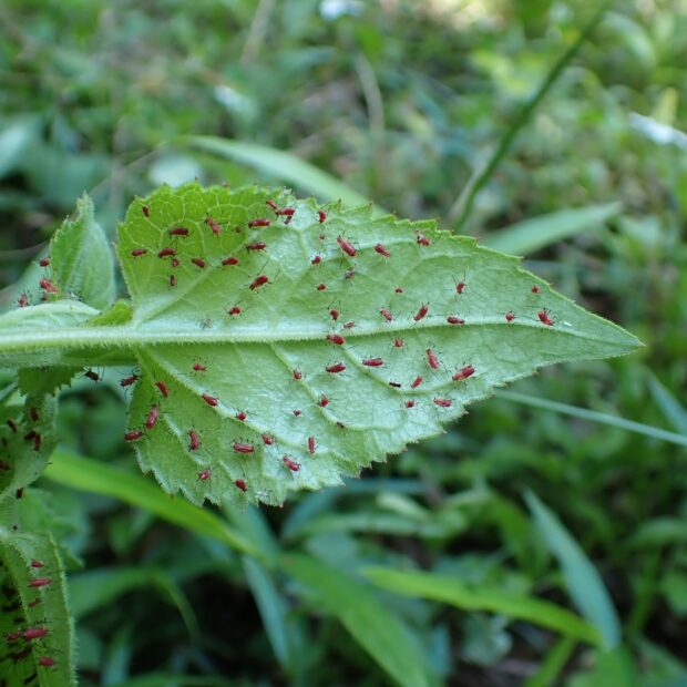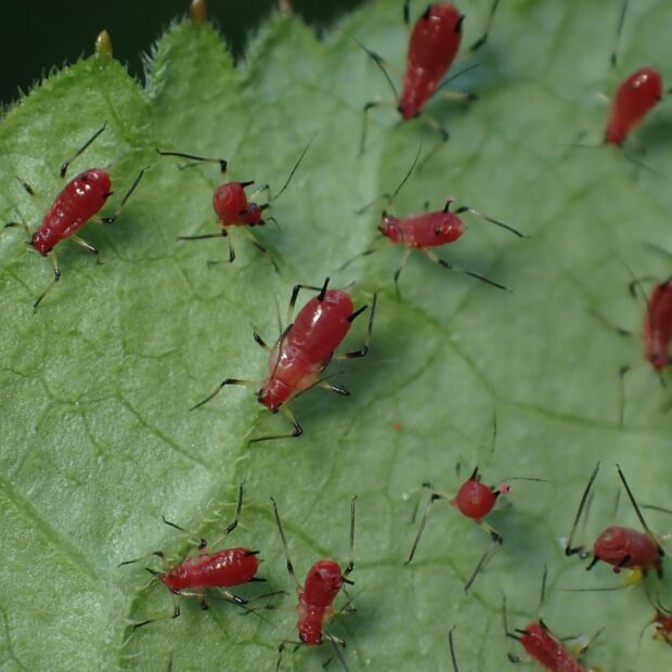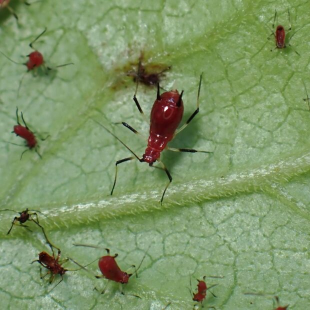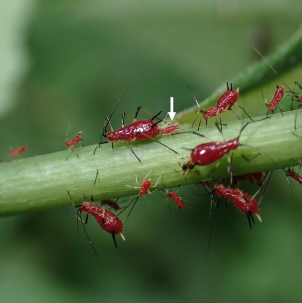シラヤマギクにつく赤いアブラムシ