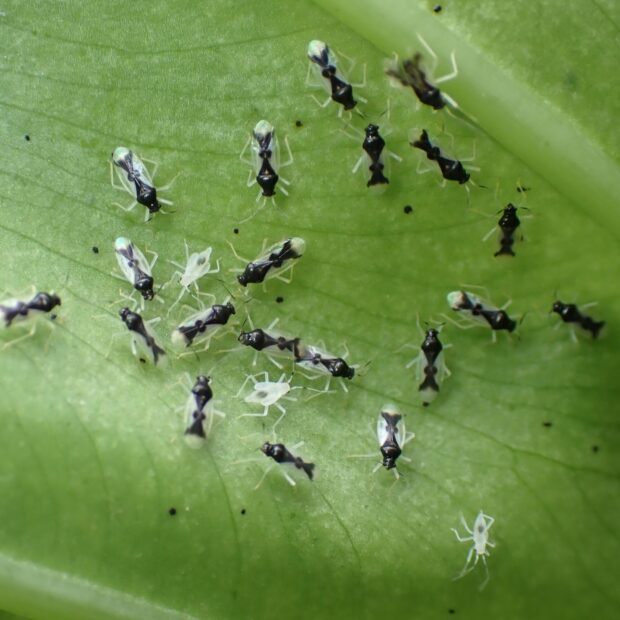 クワズイモの葉裏で集団生活