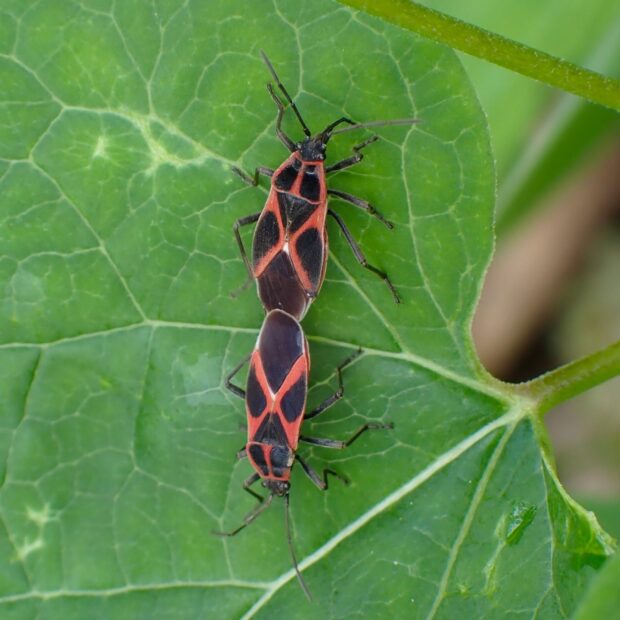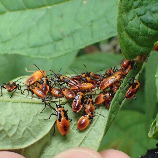 赤黒のデザインが美しいカメムシ
