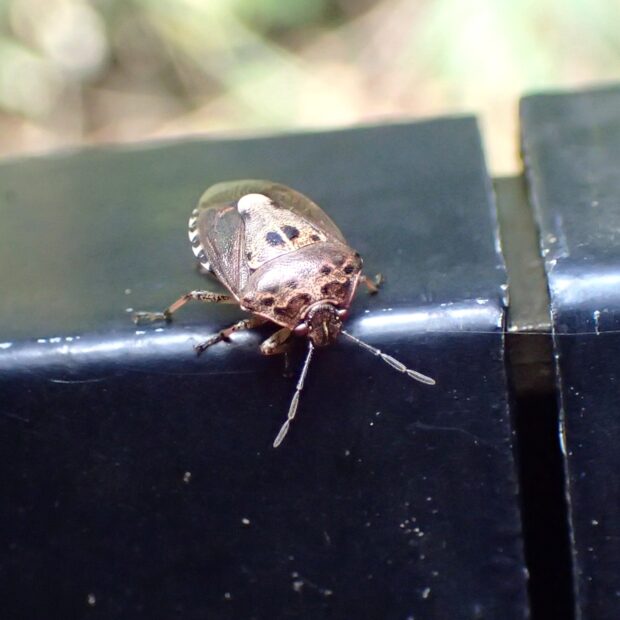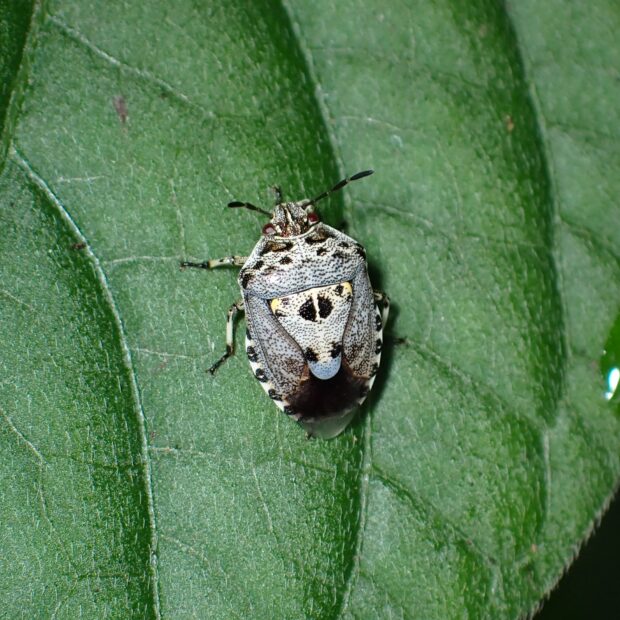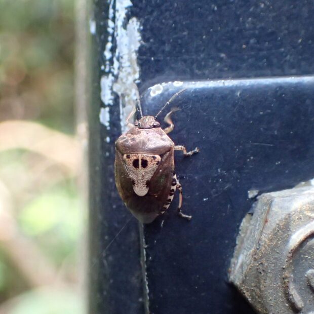 黒い紋が特徴的なカメムシ