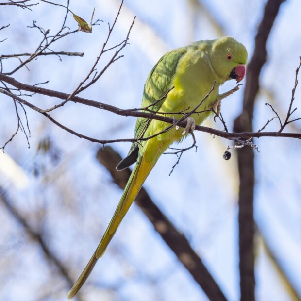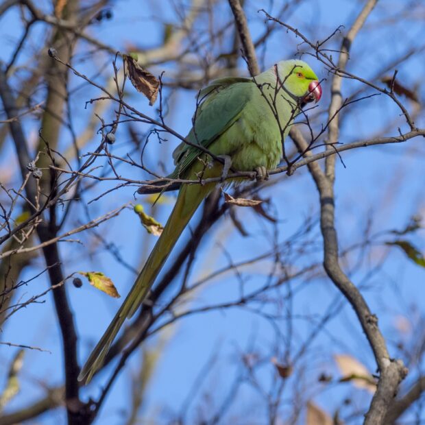 東京の空を舞う大きなインコ