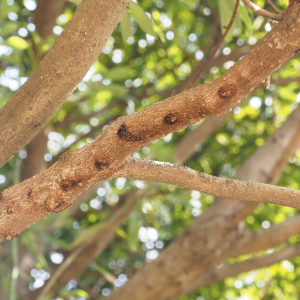 • 幼虫は枝に穴を開け、 排泄物を出す。