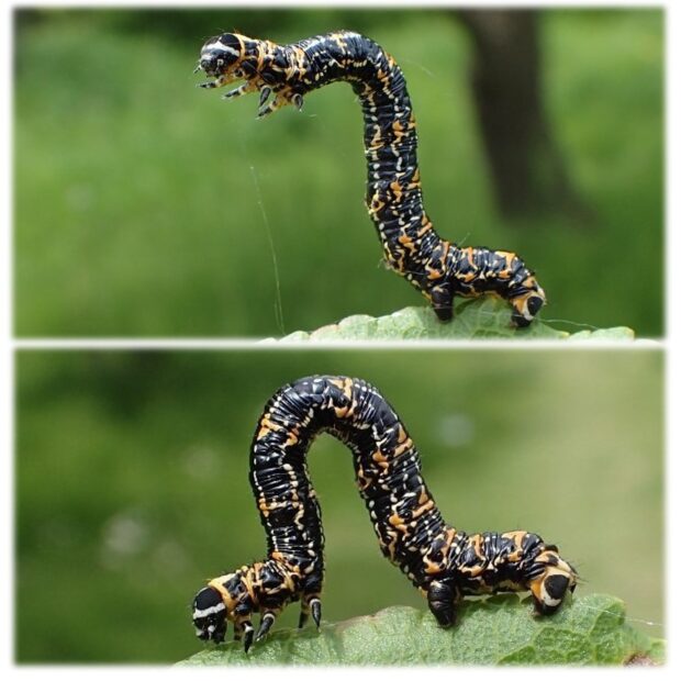 • 幼虫はシャクシリムシ。 尺をとる(指で長さをはかる)ように歩く。