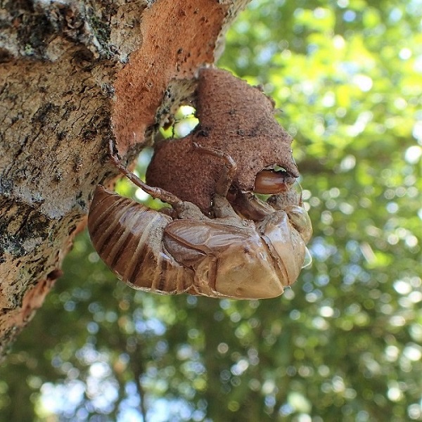 午前中に「シャアシャア・・・♪」と、 大きな声で鳴くセミ。 大型で黒くがっしりしています。 透きとおったはねには緑色の脈が目立ちます。 南方系のセミですが、 関東で増えてきており、 分布を東北地方まで広げています。