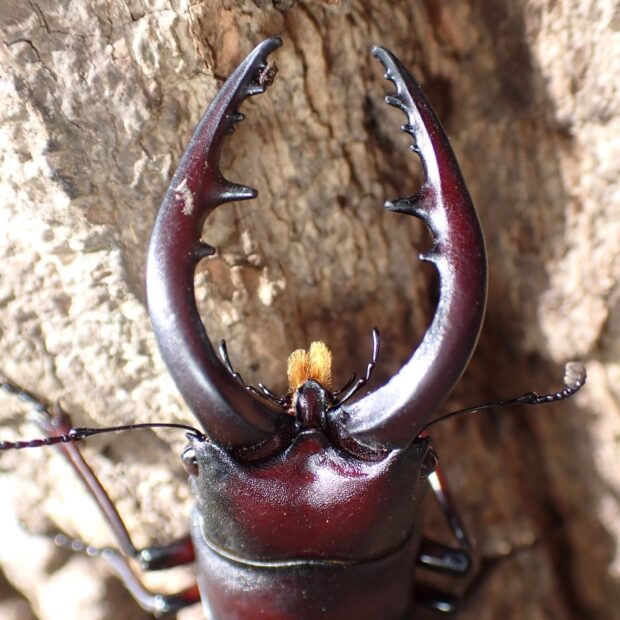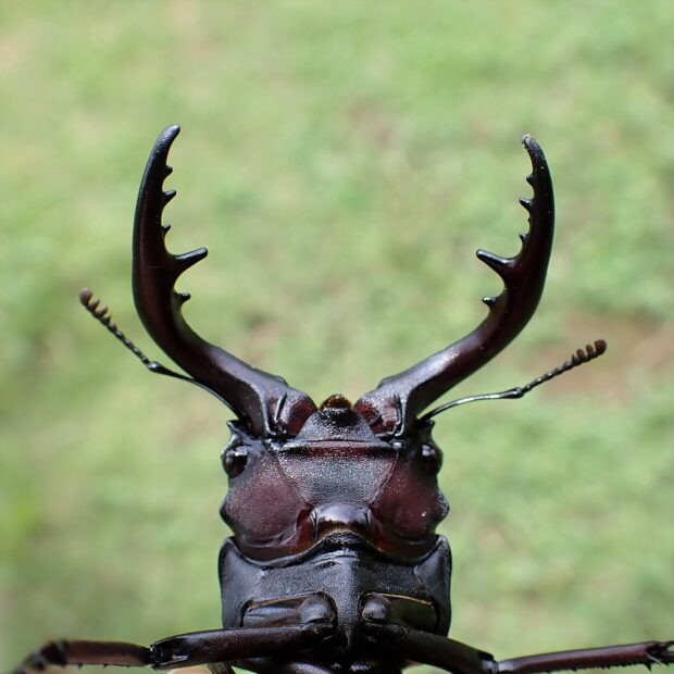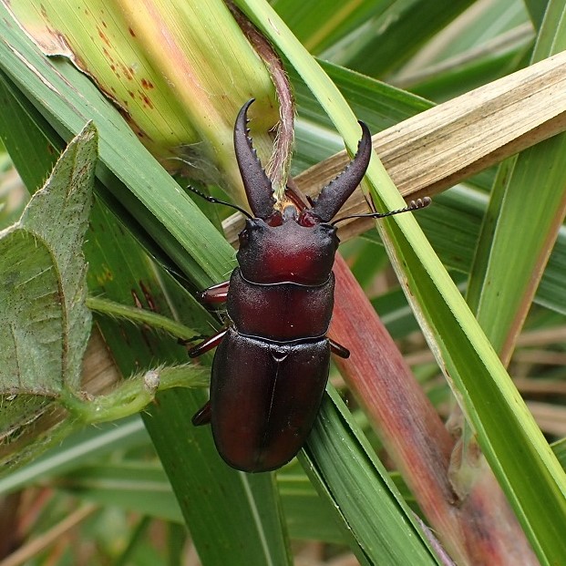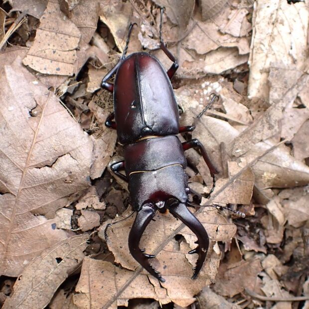 • オス。 大きく曲がった大あごがりっぱ。