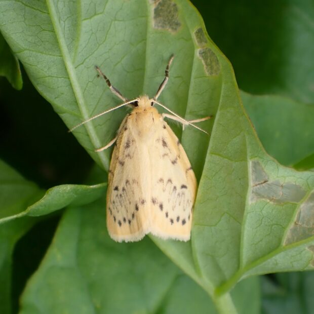 ジグザグ模様の黄色いコケガ