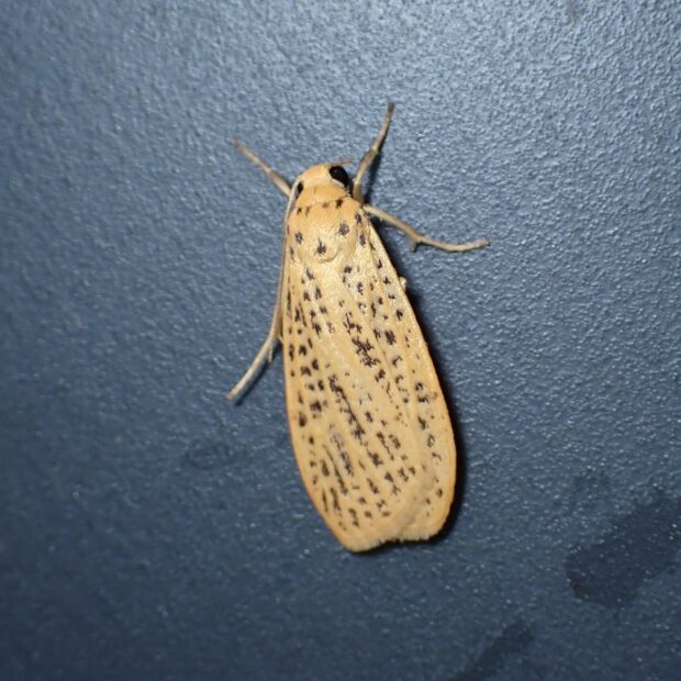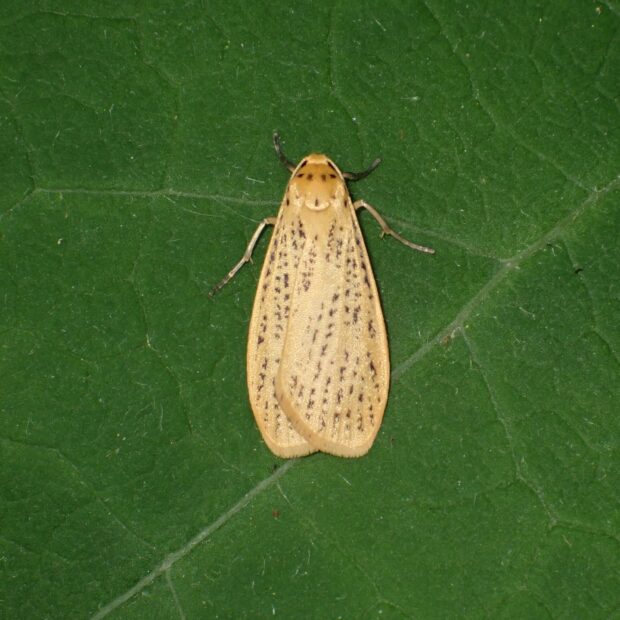 黒点を散りばめた黄色いコケガ