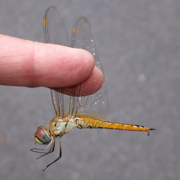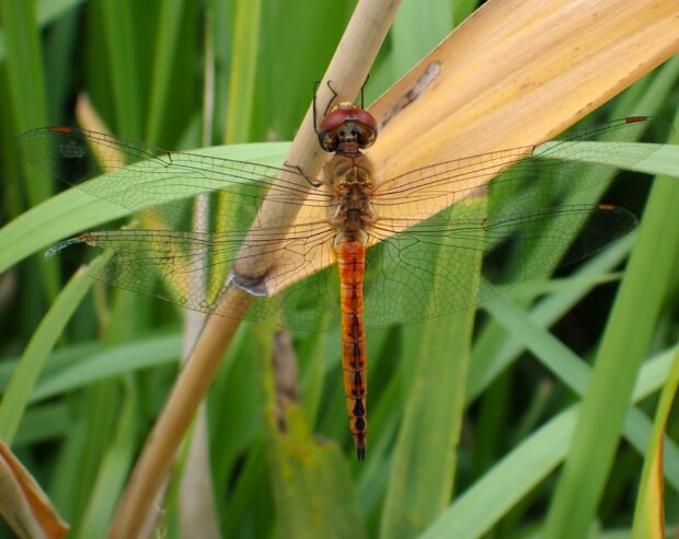 南国のトンボ。 開けた草地などで群れて飛んでいます。 南の地方から、 世代交代をしながら北へ北へ、 一方通行の旅。 関東地方では冬は越せずに死んでしまいます。