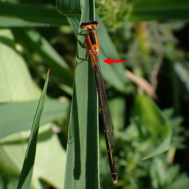• 若い個体。 腹部背中の黒い線が、 第1節に達しない。