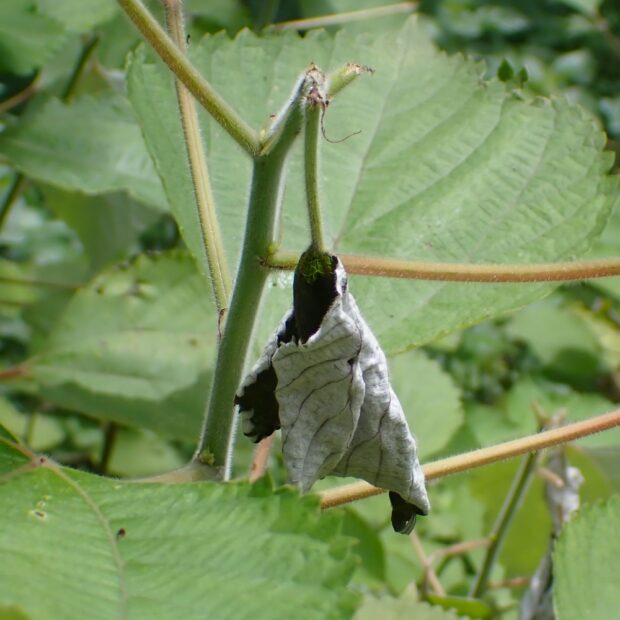 • 成虫がカラムシの葉柄を食べ、 葉がしおれる。