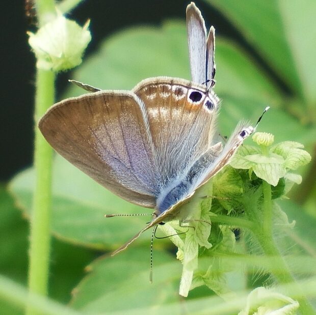 • メス。 表ばねは暗色の部分が広く中央がブルー。