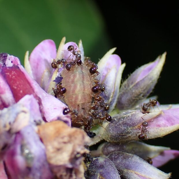 • 幼虫はマメ科植物の花や若い果実を食べる。