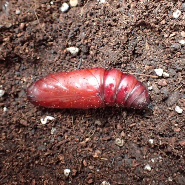 夏にあわられるスズメガ。 胸の模様が人の顔に見えることから「めんがた」という名前がつきました。 幼虫は大きく、 緑色、 黄色、 褐色のタイプがあります。 成虫はミツバチの巣を襲い、 蜜を盗む(蜜ドロボウ)ことが知られています。 九州以南で見られた南方系のガですが、 北上し、 本州各地で見られるようになりました。