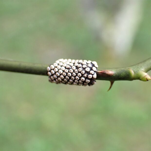 • 糸で作った幼虫の大きな住みかは目立つ。
