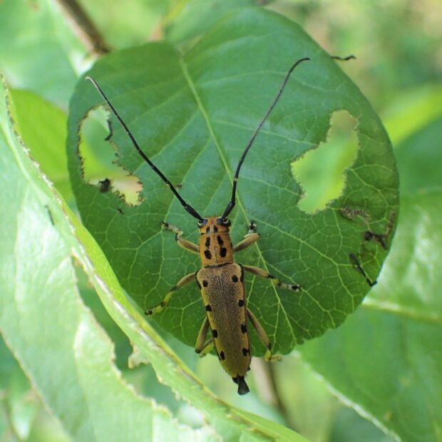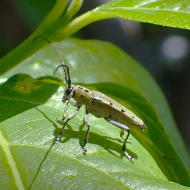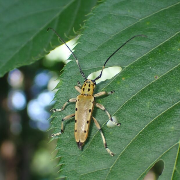 黒い点が規則正しく並ぶカミキリムシ