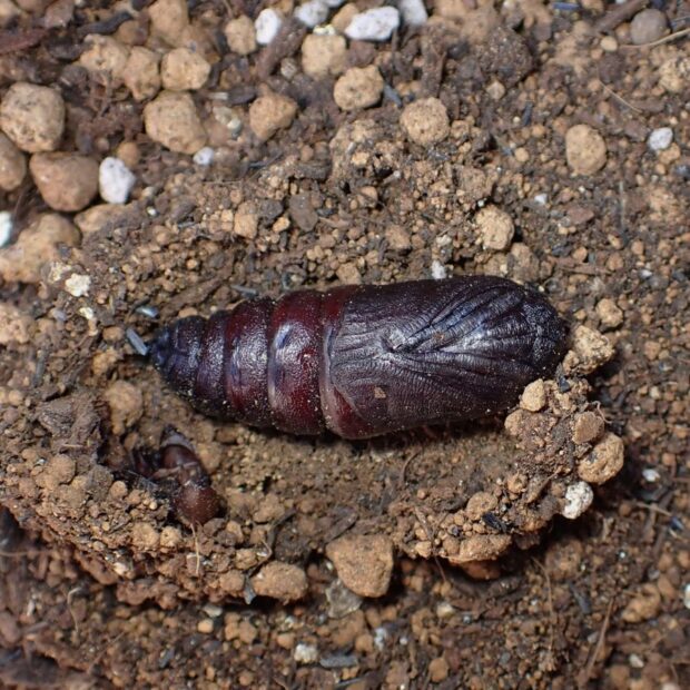 • 黒い点々は、 寄生バエあるいは寄生バチによるものか?