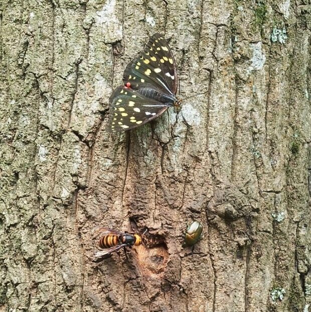 • 樹液酒場に集まる虫たち。 ケンカになることもある。 どの虫が強いかな?