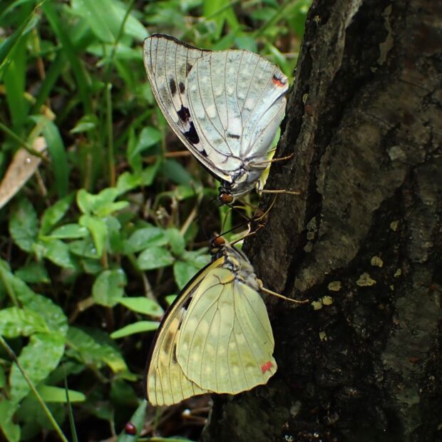 日本の国蝶で、 雑木林を代表するチョウ。 オスは鮮やかな青紫色で、 メスはこげ茶色。 力強く羽ばたき、 オスは縄張りをもちます。 樹液によくやってきます。 良好な里山環境が少なくなり減少しています。