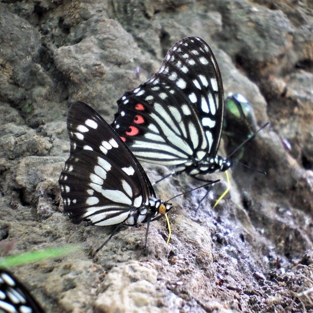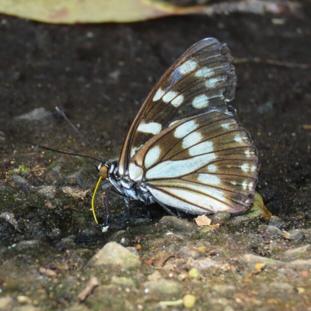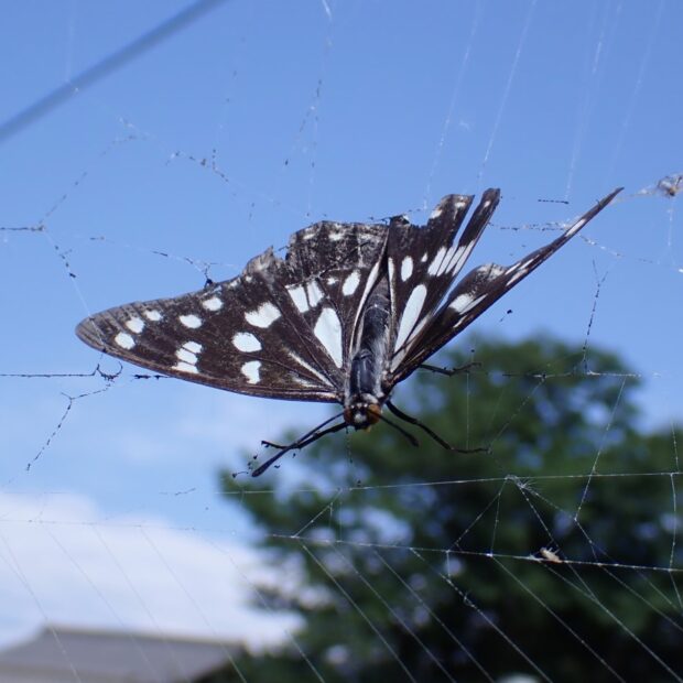 黒いはねに白い模様があるタテハチョウの仲間。 春にあらわれるゴマダラチョウは白っぽく、 夏以降は黒っぽくなります。 花に来ることはなく、 樹液に集まり、 地面で給水もします。 街中の公園でも見られることがあります。